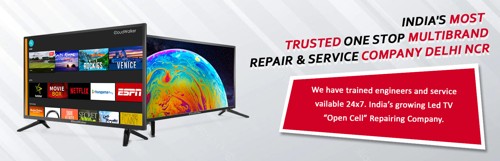 We Repair & Replacement Screen/Display/Panel of all model LED TV like 43 Inch LED TV, 65 Inch 4K Smart UHD LED TV, 43 Inch LG smart Led tv, Diskey LED TV, 24 Inch Open Cell and 32 Inch from New Delhi.